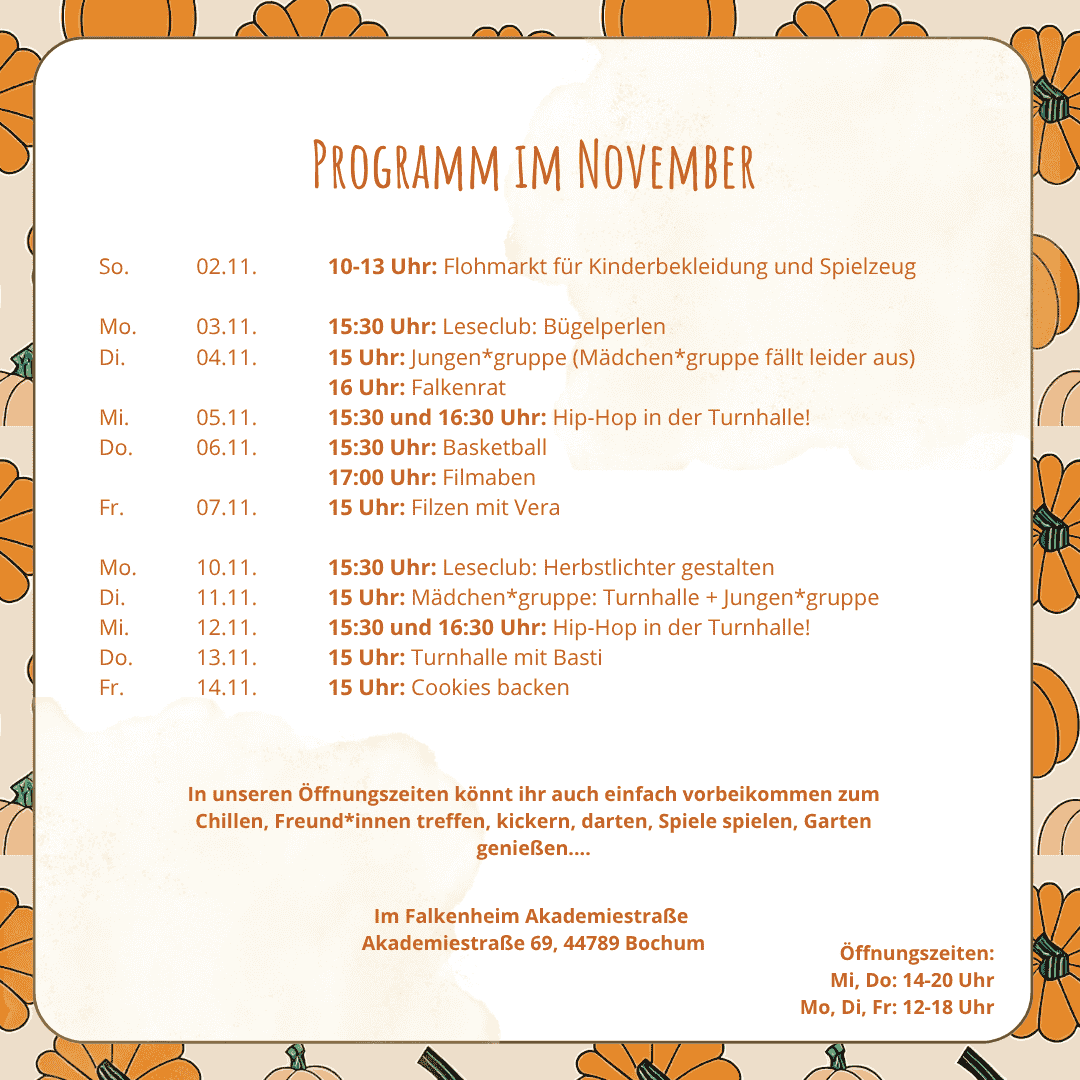 Das ist unser Programm für die ersten beiden Novemberwochen. [...]
