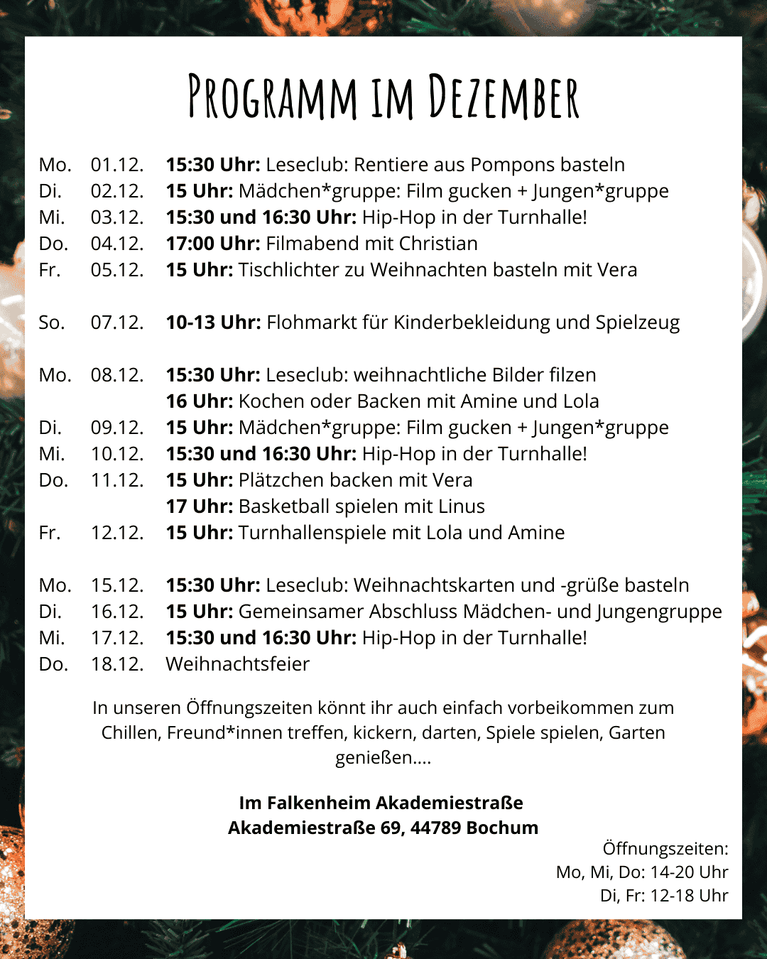 Das ist unser Programm im Dezember. Kommt vorbei!