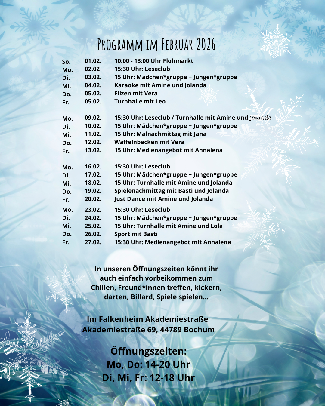 Das ist unser Programm im Februar. Kommt vorbei!