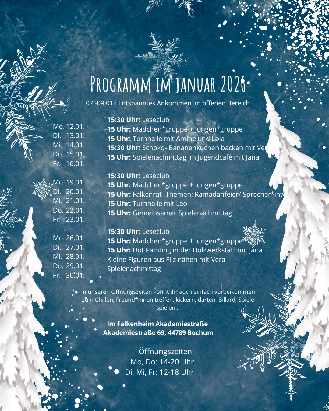 Alle anderen Angebote sind für alle zwischen 6 und 27 Jahren zugänglich und können einfach ohne Anmeldung besucht werden. Ansonsten könnt ihr auch einfach innerhalb unserer Öffnungszeiten vorbeikommen und kickern, chillen, darten, Spiele spielen und noch vieles mehr 😊